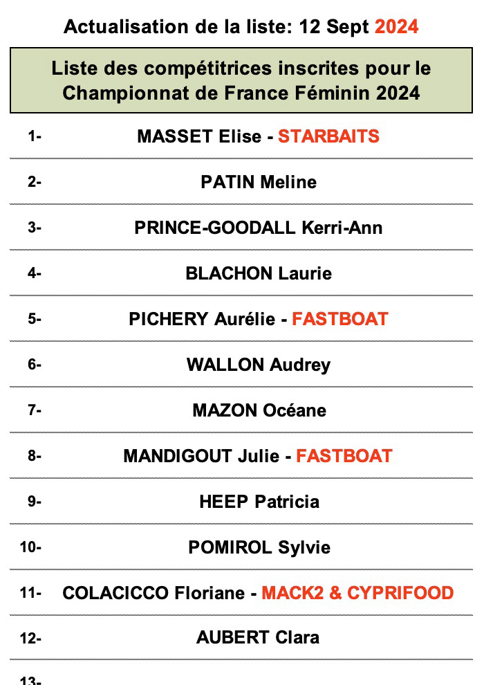 Pour cette édition, les participantes peuvent s’inscrire de n’importe quelle région, directement pour le championnat, sans passer par des phases qualificatives. Ce Championnat se déroule sur 1 seule et unique manche. Mais il sera évolutif…
