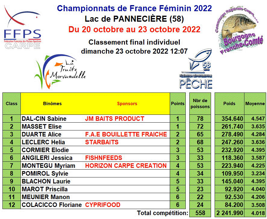 Cette compétition se pratique en individuel. Une seule compétitrice par poste de pêche (Contrairement aux championnats séniors ce championnat ne nécessite pas d’être en binôme). Il est ainsi, plus facile de participer, d’autant plus qu’il se déroule sur une période de temps plus courte (48 heures).